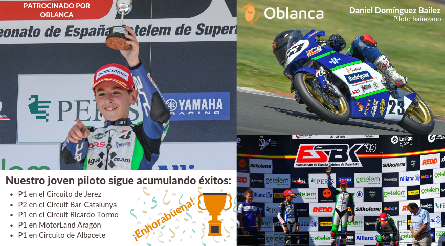 Grupo Oblanca, reafirmando su compromiso con el deporte, patrocina durante todo este año 2019 a Daniel Domínguez, un joven piloto de motociclismo bañezano.