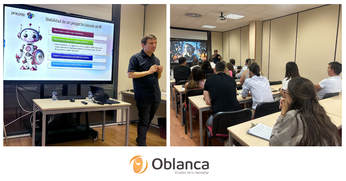 En Grupo Oblanca con el fin de aprender cómo aplicar de manera correcta la IA y hacer así eficiente nuestro trabajo diario, se están impartiendo diferentes sesiones de la empresa PROCONSI de León. A estas jornadas de formación están asistiendo diferentes departamentos de la compañía: IT, Marketing, Administración, Comercial y Calidad, e incluso nuestro director general.