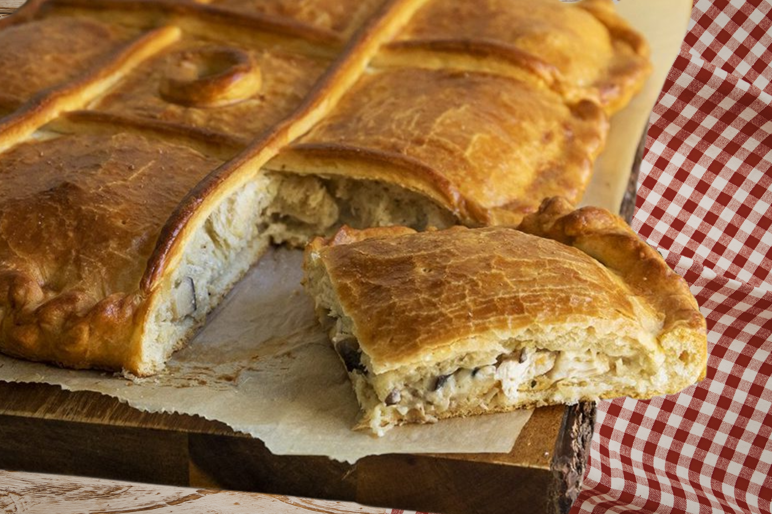 - Hornea a 200 °C con calor arriba y abajo durante 35 minutos, controlando de vez en cuando hasta que la empanada esté dorada.